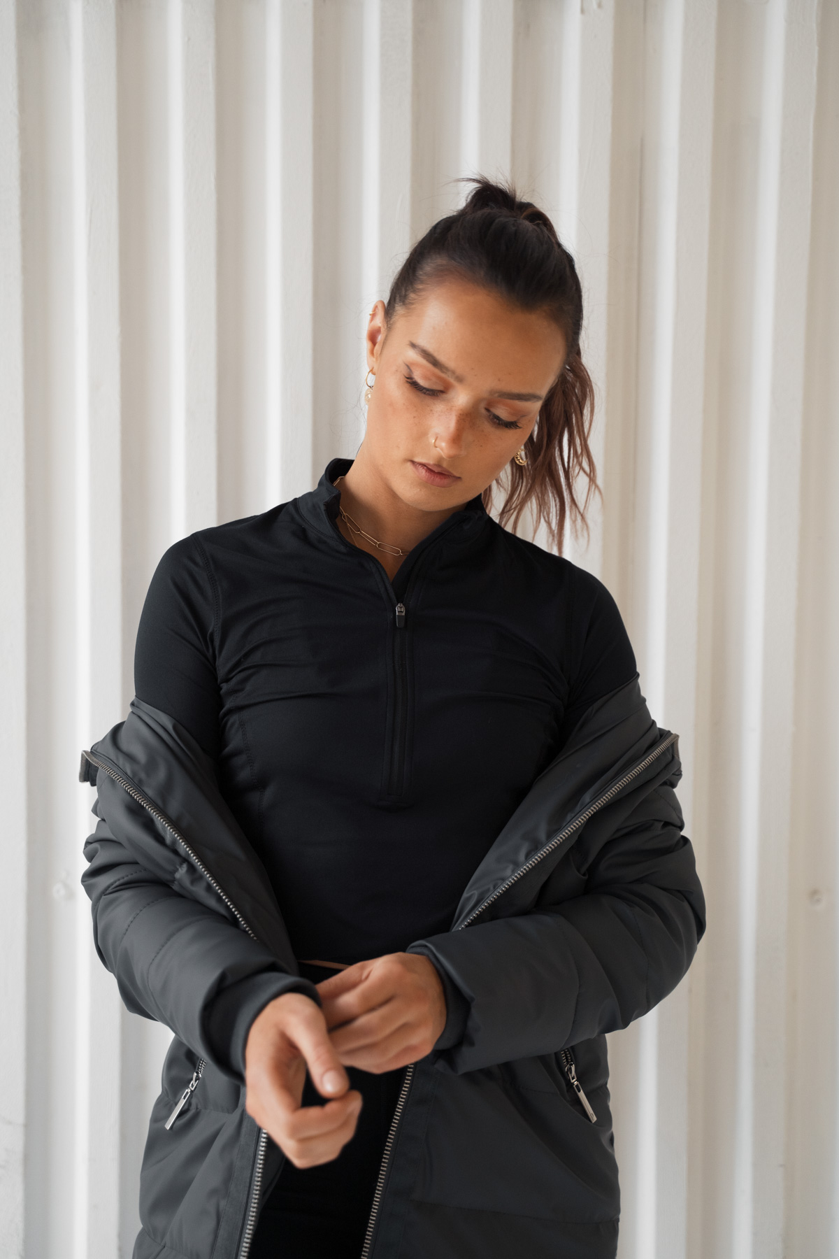 Le mannequin porte une taille S. La veste taille normalement et nous vous recommandons de choisir votre taille habituelle. Si vous souhaitez porter un sweat épais en dessous ou une coupe légèrement plus ample, nous vous recommandons de prendre une taille au-dessus.